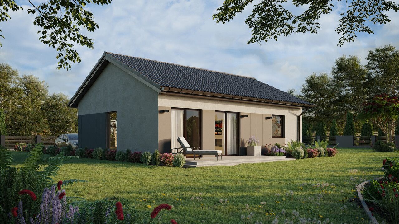 Das Haus ERDOL 1 XL ist eine erweiterte Version des Hauses ERDOL 1. Das Haus mit einer Fläche von 74 m² (116 m² in der Version mit nutzbarem Dachgeschoss) bietet seinen Bewohnern einen komfortablen Raum, in dem alles, was sie brauchen, ist. Seine geringe Größe macht es einfach und kostengünstig in der Instandhaltung. Für den Bau wird KVH-Holz verwendet, das die Grundlage der gesamten Struktur bildet. Dank energiesparender Lösungen Planung verhindert es Energieverluste und ist umweltfreundlich.