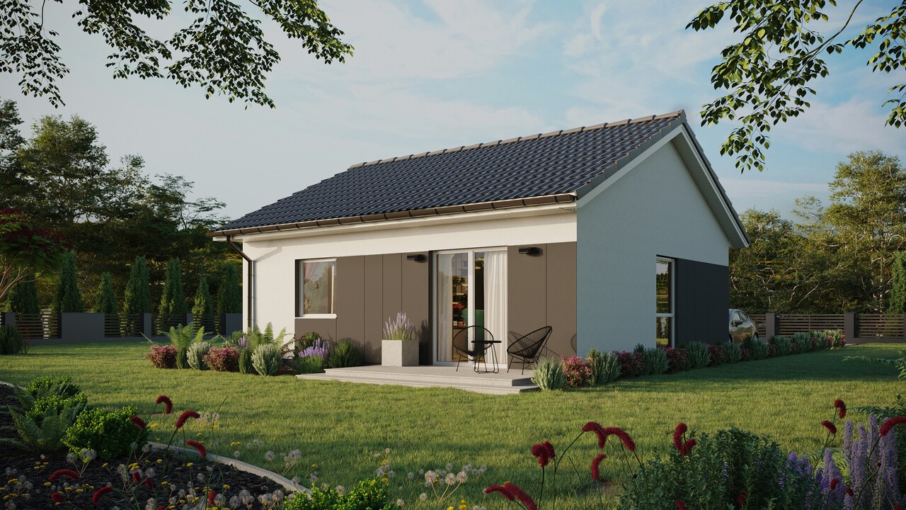 Das Haus ERDOL 1 mit einer Fläche von 59 m² (90 m² in der Version mit nutzbarem Dachgeschoss) bietet seinen Bewohnern einen komfortablen Raum, in dem alles, was sie brauchen, vorhanden ist. Seine geringe Größe macht es einfach und kostengünstig in der Instandhaltung, was in Verbindung mit den modernen und ökologischen Lösungen, die bei seiner Konstruktion verwendet wurden, die Klarheit gibt, dass dieses Haus im Einklang mit der Natur geschaffen wurde.