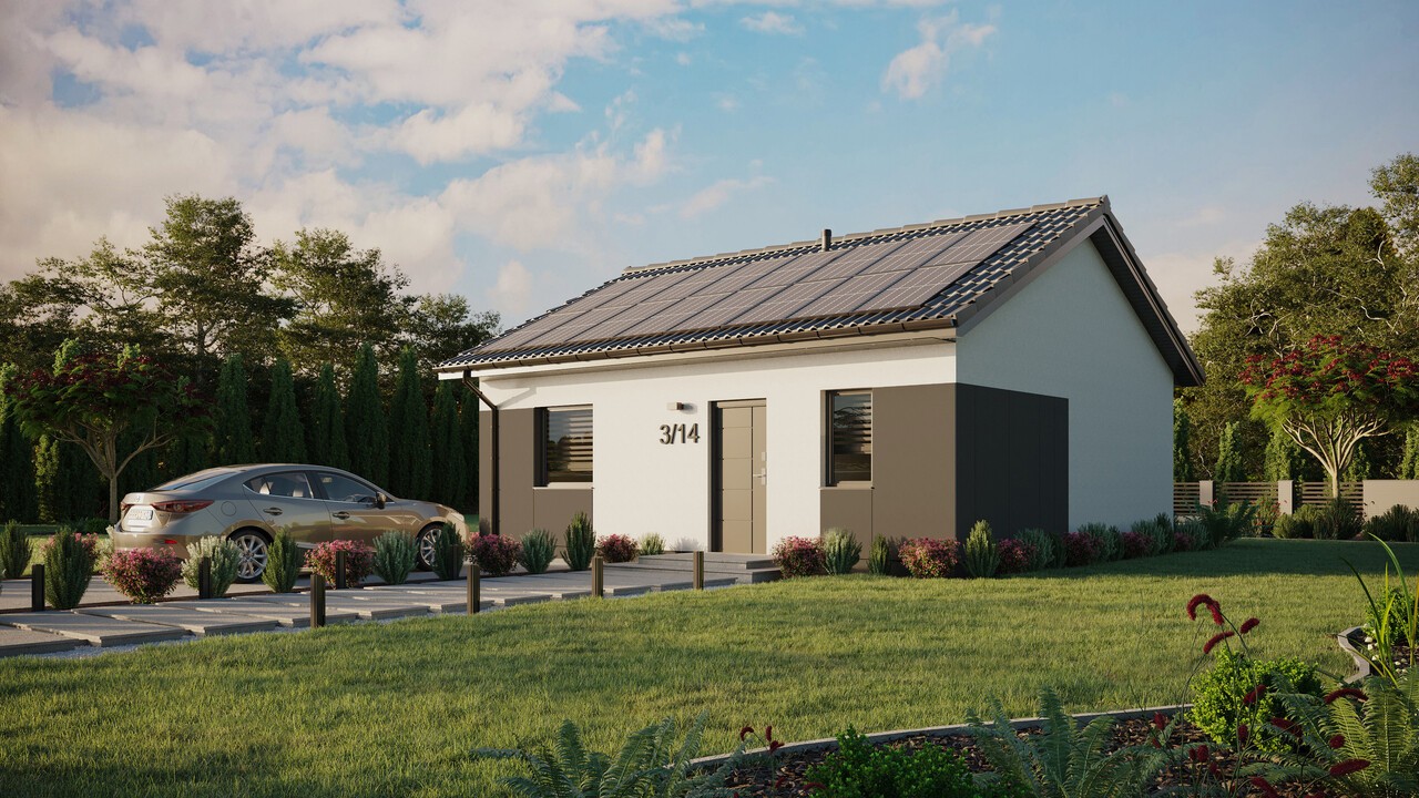 Das Haus ERDOL 1 mit einer Fläche von 59 m² (90 m² in der Version mit nutzbarem Dachgeschoss) bietet seinen Bewohnern einen komfortablen Raum, in dem alles, was sie brauchen, vorhanden ist. Seine geringe Größe macht es einfach und kostengünstig in der Instandhaltung, was in Verbindung mit den modernen und ökologischen Lösungen, die bei seiner Konstruktion verwendet wurden, die Klarheit gibt, dass dieses Haus im Einklang mit der Natur geschaffen wurde.