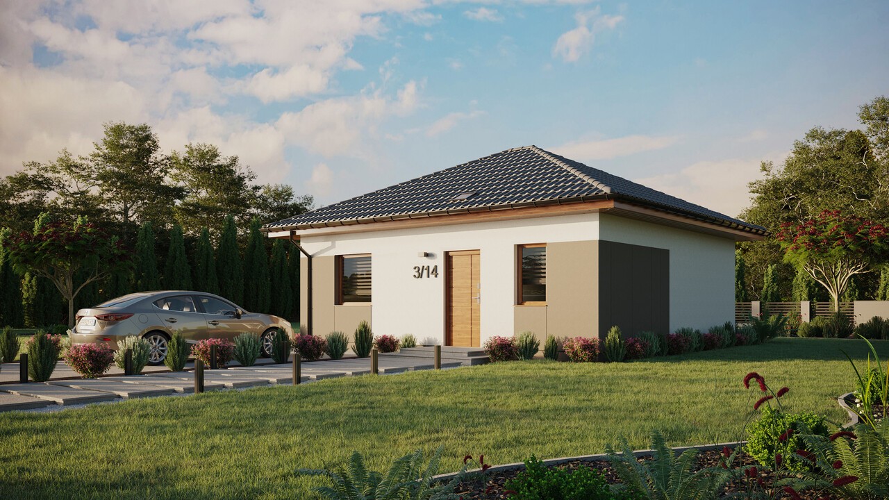 Das Haus ERDOL 1 mit einer Fläche von 59 m² (90 m² in der Version mit nutzbarem Dachgeschoss) bietet seinen Bewohnern einen komfortablen Raum, in dem alles, was sie brauchen, vorhanden ist. Seine geringe Größe macht es einfach und kostengünstig in der Instandhaltung, was in Verbindung mit den modernen und ökologischen Lösungen, die bei seiner Konstruktion verwendet wurden, die Klarheit gibt, dass dieses Haus im Einklang mit der Natur geschaffen wurde.