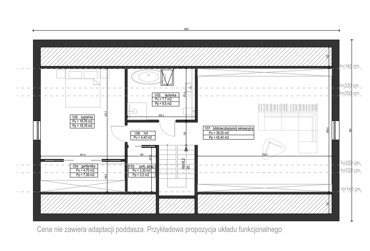 - Ausbau und Gestaltung des Dachbodens, d. h. Errichtung der Dachbodenbelüftung, des Fußbodens, der Trennwände, der Decken und der Dachschrägen, Installation der Elektro- und Sanitäranlagen