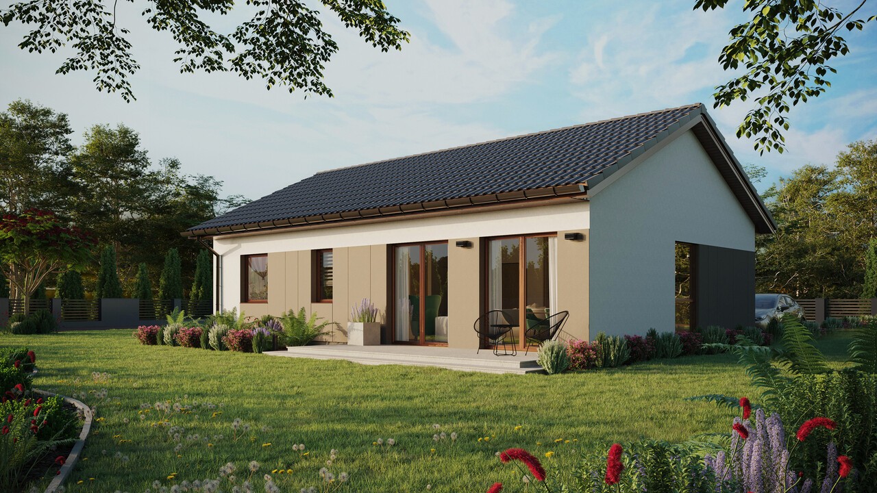 Das Haus ERDOL 2 XL mit einer Fläche von 82 m² (130 m² bei einem Projekt mit nutzbarem Dachgeschoss) ist eine erweiterte Version des Hauses ERDOL 2. Es ist eine perfekte Lösung für alle Menschen, die in ihrem Haus keine große Anzahl an Zimmern benötigen, aber den zusätzlichen Raum nutzen möchten, um mehr Platz für komfortables Arbeiten zu gewinnen. Die in diesem Projekt verwendeten modernen Technologien und ökologischen Lösungen machen es zu einem energieeffizienten Haus, das im Einklang mit der Natur funktioniert. Für den Bau wird KVH-Holz verwendet, das die Grundlage der gesamten Struktur bildet. Entsprechend ausgewählte Dämmstoffe sorgen dafür, dass das Haus vor Wärmeverlusten geschützt ist.