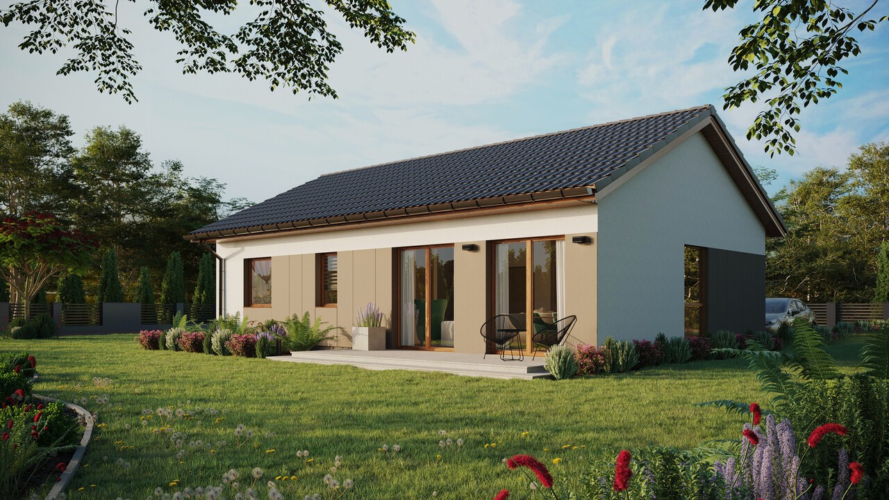 Das Haus ERDOL 2 XL mit einer Fläche von 82 m² (130 m² bei einem Projekt mit nutzbarem Dachgeschoss) ist eine erweiterte Version des Hauses ERDOL 2. Es ist eine perfekte Lösung für alle Menschen, die in ihrem Haus keine große Anzahl an Zimmern benötigen, aber den zusätzlichen Raum nutzen möchten, um mehr Platz für komfortables Arbeiten zu gewinnen. Die in diesem Projekt verwendeten modernen Technologien und ökologischen Lösungen machen es zu einem energieeffizienten Haus, das im Einklang mit der Natur funktioniert. Für den Bau wird KVH-Holz verwendet, das die Grundlage der gesamten Struktur bildet. Entsprechend ausgewählte Dämmstoffe sorgen dafür, dass das Haus vor Wärmeverlusten geschützt ist.