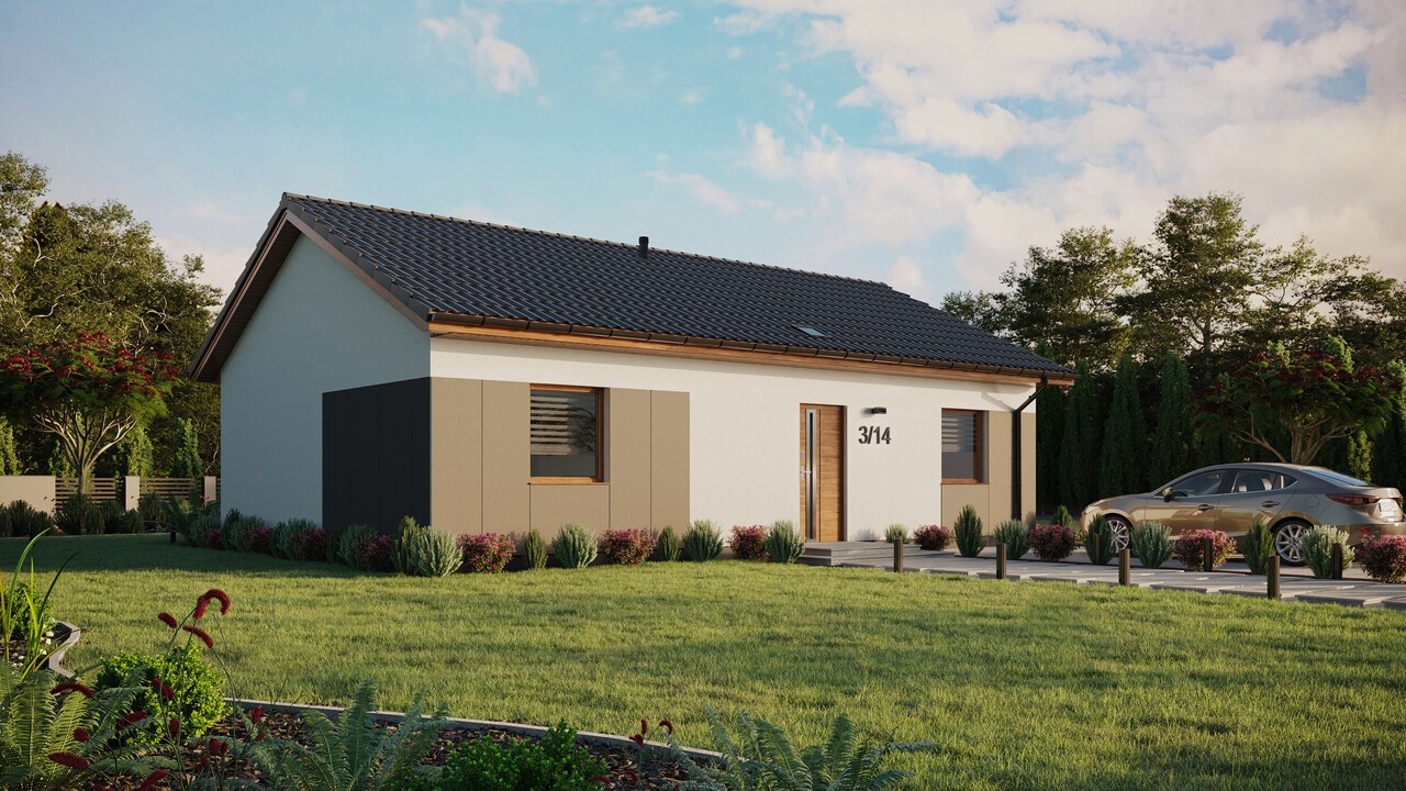 Das Haus ERDOL 2 XL mit einer Fläche von 82 m² (130 m² bei einem Projekt mit nutzbarem Dachgeschoss) ist eine erweiterte Version des Hauses ERDOL 2. Es ist eine perfekte Lösung für alle Menschen, die in ihrem Haus keine große Anzahl an Zimmern benötigen, aber den zusätzlichen Raum nutzen möchten, um mehr Platz für komfortables Arbeiten zu gewinnen. Die in diesem Projekt verwendeten modernen Technologien und ökologischen Lösungen machen es zu einem energieeffizienten Haus, das im Einklang mit der Natur funktioniert. Für den Bau wird KVH-Holz verwendet, das die Grundlage der gesamten Struktur bildet. Entsprechend ausgewählte Dämmstoffe sorgen dafür, dass das Haus vor Wärmeverlusten geschützt ist.