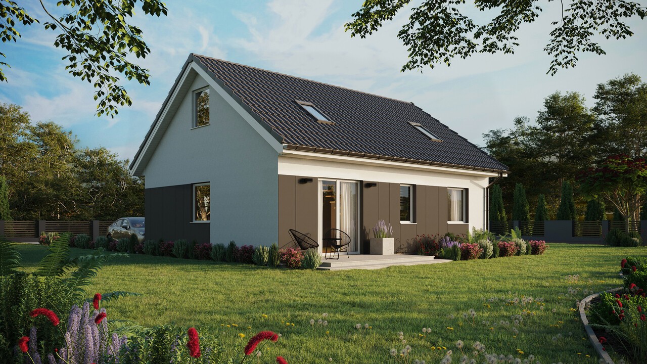 Das Haus ERDOL 2 mit einer Fläche von 68 m² (107 m² in der Version mit nutzbarem Dachgeschoss) wurde entworfen, um auf kompaktem Raum Komfort und alles zu bieten, was im täglichen Leben am wichtigsten ist. Modernste Technologien und ökologische Lösungen machen es zu einem energieeffizienten Haus, das im Einklang mit der Natur funktioniert. Für die Konstruktion wird KVH-Holz verwendet, das die Grundlage der gesamten Struktur bildet. Entsprechend ausgewählte Dämmstoffe sorgen dafür, dass das Haus vor Wärmeverlusten geschützt ist.