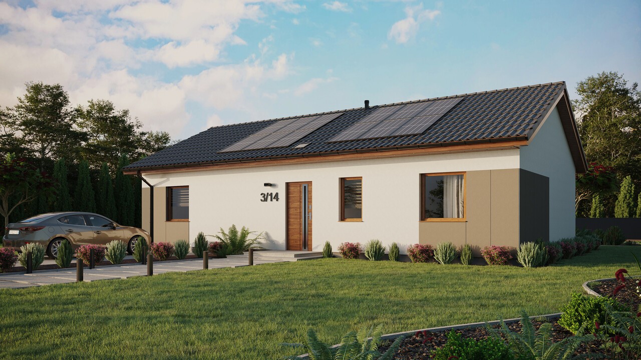 Das Projekt ERDOL 3 XL Haus mit einer Fläche von 97 m² (151 m² in der Version mit nutzbarem Dachboden) ist ein Projekt für Menschen, die mehr komfortablen Platz im Alltag haben wollen. Das Haus in dieser Version ist ein erweitertes ERDOL 3, dank dem es möglich war, die Fläche des Wohnzimmers zu vergrößern und eine separate Treppe (bei der Version mit nutzbarem Dachboden) oder einen zusätzlichen Hauswirtschaftsraum (bei der Version ohne nutzbaren Dachboden) einzurichten. Wenn Sie sich mehr Raum wünschen, ist dieses Projekt ideal für Sie. Die modernen Technologien und ökologischen